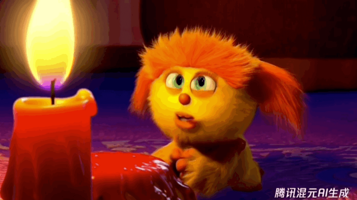 - 腾讯文生视频:动画场景特写了一个短毛绒怪物跪在融化的红蜡烛旁边。艺术风格为3D写实,注重光线和纹理。这幅画的氛围充满了惊奇和好奇,怪物睁大眼睛张着嘴巴注视着火焰。它的姿势和表情传达出一种纯真和俏皮的感觉,仿佛它是第一次探索周围的世界。暖色调和戏剧性的光线运用进一步增强了画面的温馨氛围。