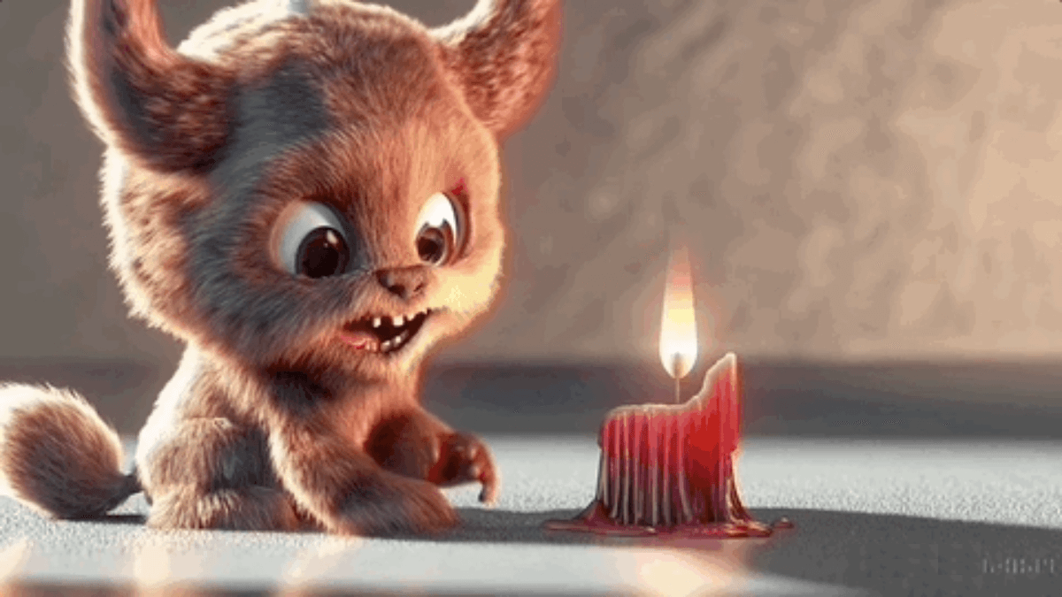 - Sora:Animated scene features a close-up of a short fluffy monster kneeling beside a melting red candle. The art style is 3D and realistic, with a focus on lighting and texture. The mood of the painting is one of wonder and curiosity, as the monster gazes at the flame with wide eyes and open mouth. Its pose and expression convey a sense of innocence and playfulness, as if it is exploring the world around it for the first time. The use of warm colors and dramatic lighting further enhances the cozy atmosphere of the image。