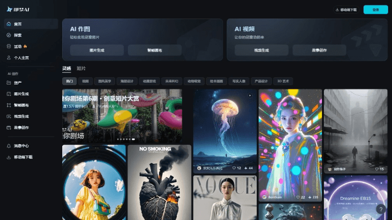 - AI图片创作:即梦AI支持文生图和以图生图两种方式,用户输入关键词或描述,AI能迅速生成相应的图片,支持超现实场景、人物肖像等多样风格。用户上传一张图也能生成具有不同风格的新图片。