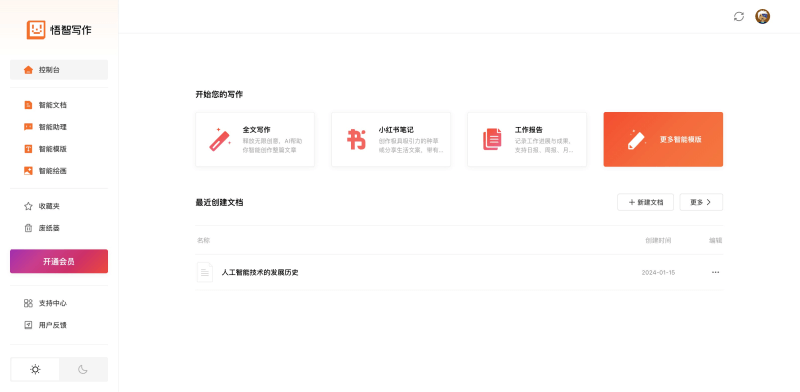 悟智写作的控制台