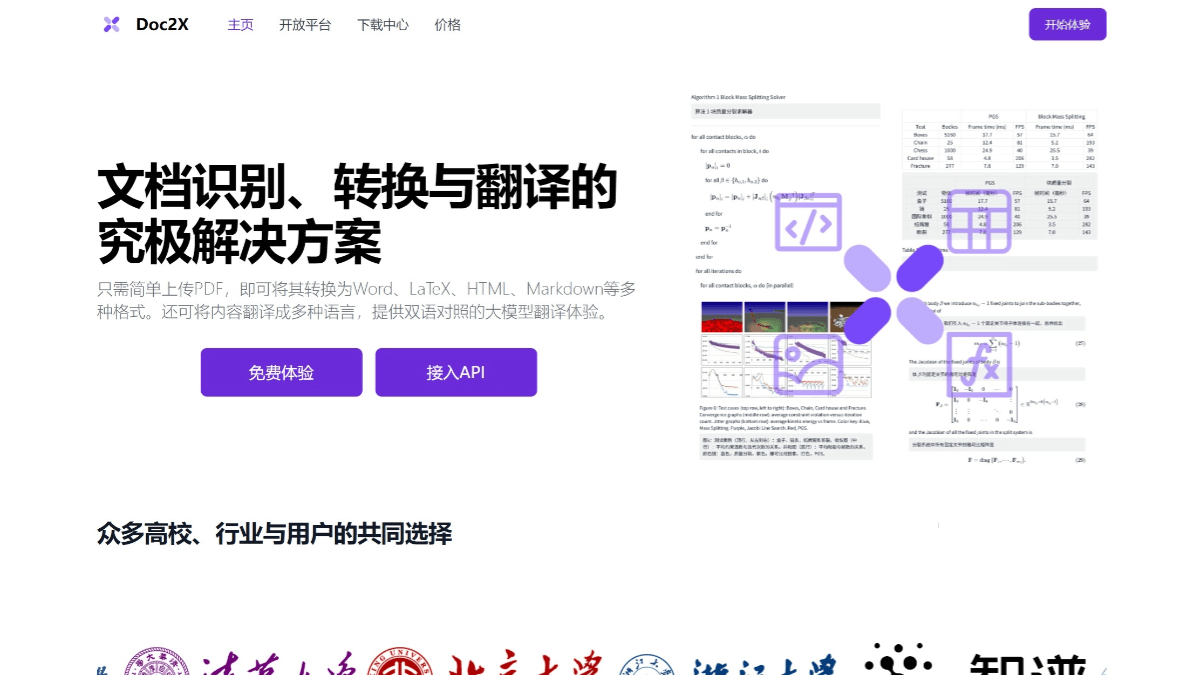 - 在线使用与集成:用户可以直接在网页上使用Doc2X,或者通过API集成到自己的系统中。