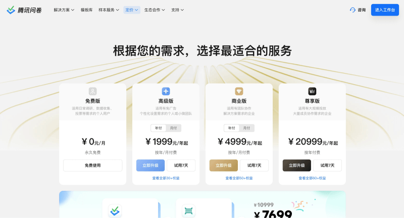 腾讯问卷的产品价格