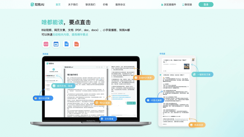 - 阅读和总结各种类型的内容,包括B站视频、网页文章、PDF文档、小宇宙播客等,自动总结摘要