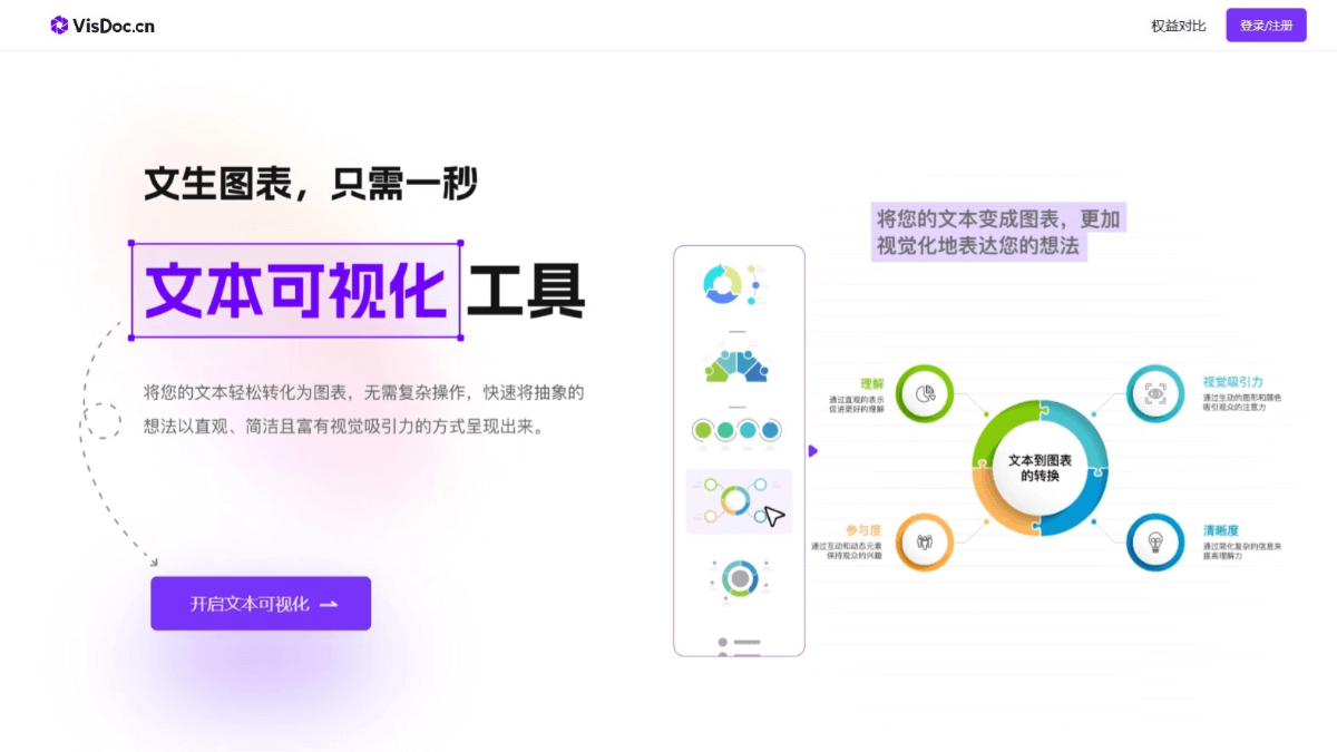VisDoc是AI文生图表工具,基于自然语言处理(NLP)技术,快速将文本内容转化为直观的图表,支持生成柱状图、折线图、饼图等多种类型。VisDoc界面简洁,操作简单,适合初学者快速上手。VisDoc智能文本分析功能支持自动识别文本中的关键信息,生成符合用户需求的图表。VisDoc提供丰富的自定义选项和多种输出格式,适用于数据分析、报告撰写、商业演示和教育等多个领域,能有效提升信息传达的效率和效果。